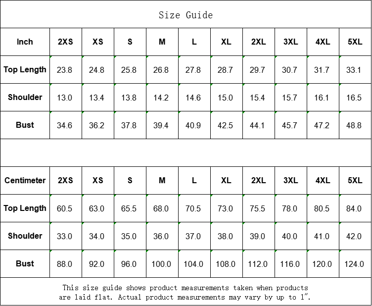 Inch 2XS XS S M L XL 2XL 3XL 4XL 5XL
