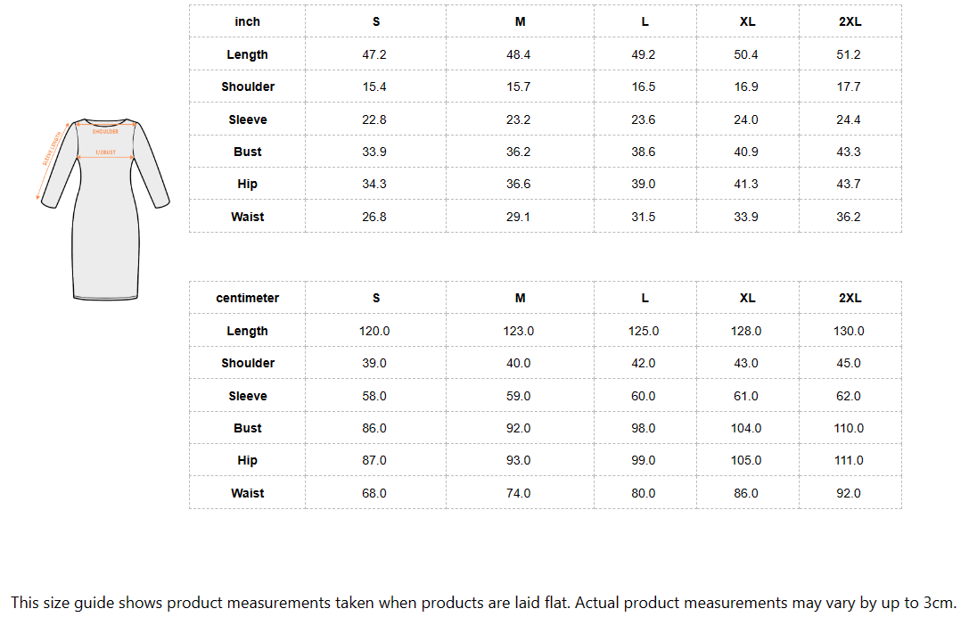 | Sleeve | 22.8 | 23.2 | 23.6 | 24.0 | 24.4 |