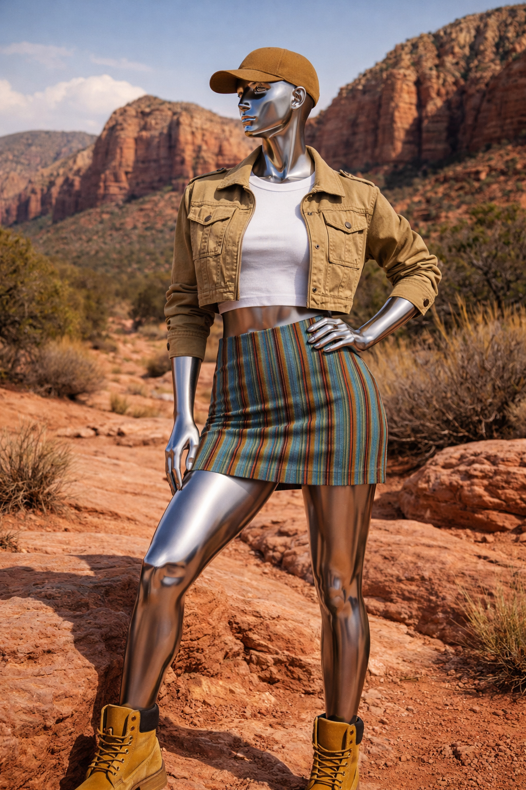 • A lightweight flannel tied around the waist for cool high-desert evenings