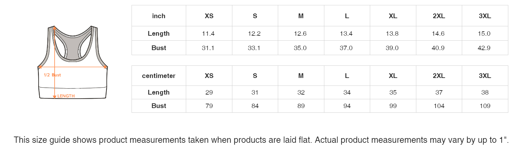 This size guide shows product measurements taken when products are laid flat. Actual product measurements may vary by up to 3cm