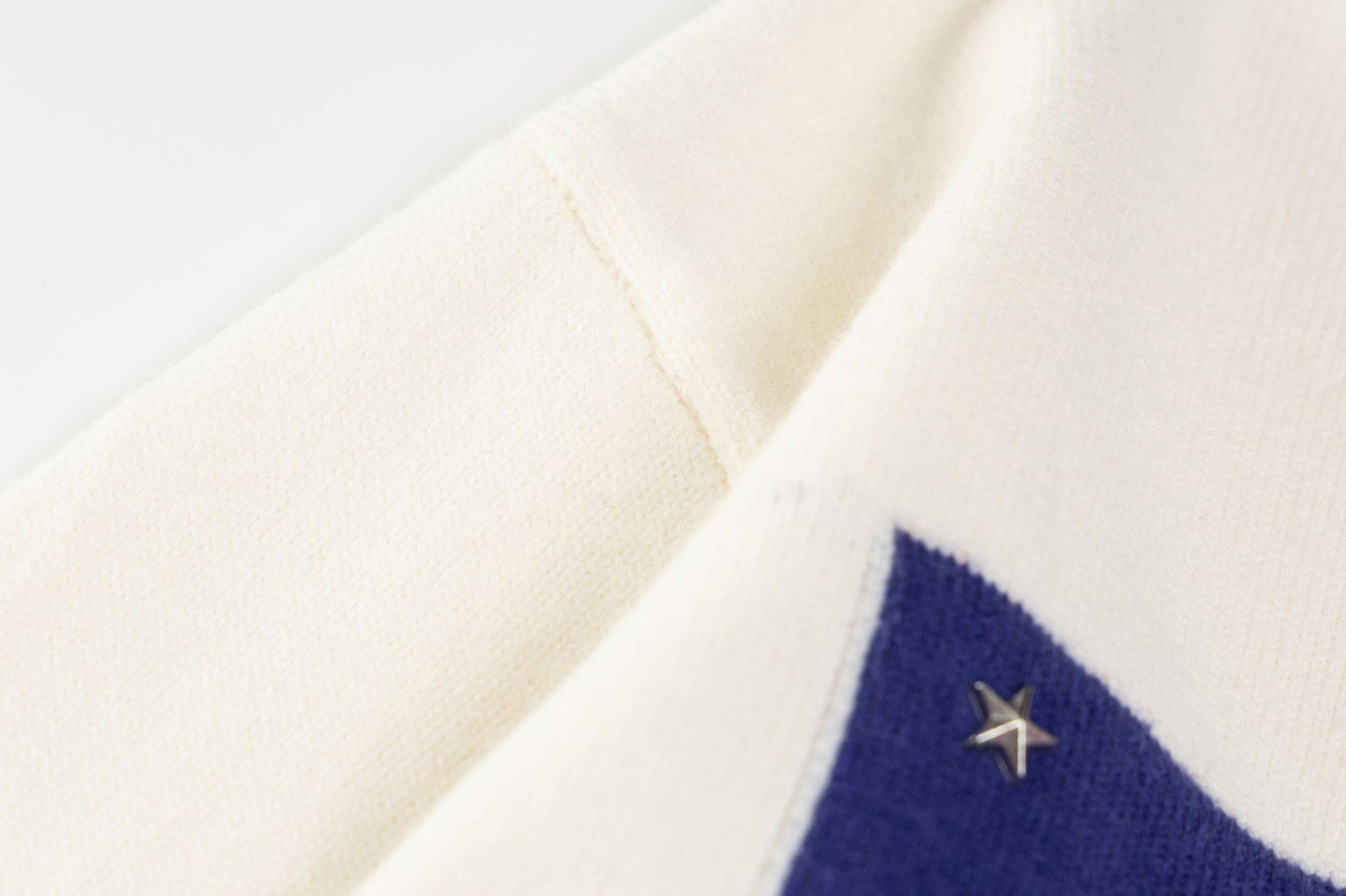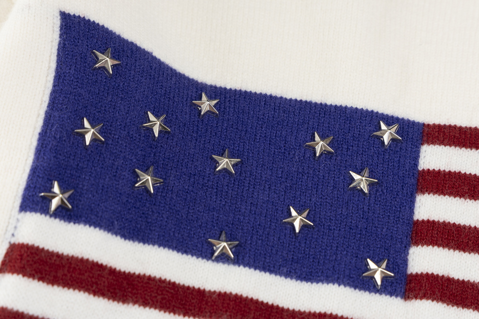 Studded Star Detail Flag Jacquard Knit Pullover Sweater